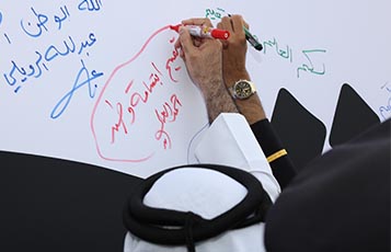 موظفو الناقلة القطرية يوقّعون على الجدارية ويؤكدون دعمهم المتواصل لدولة قطر